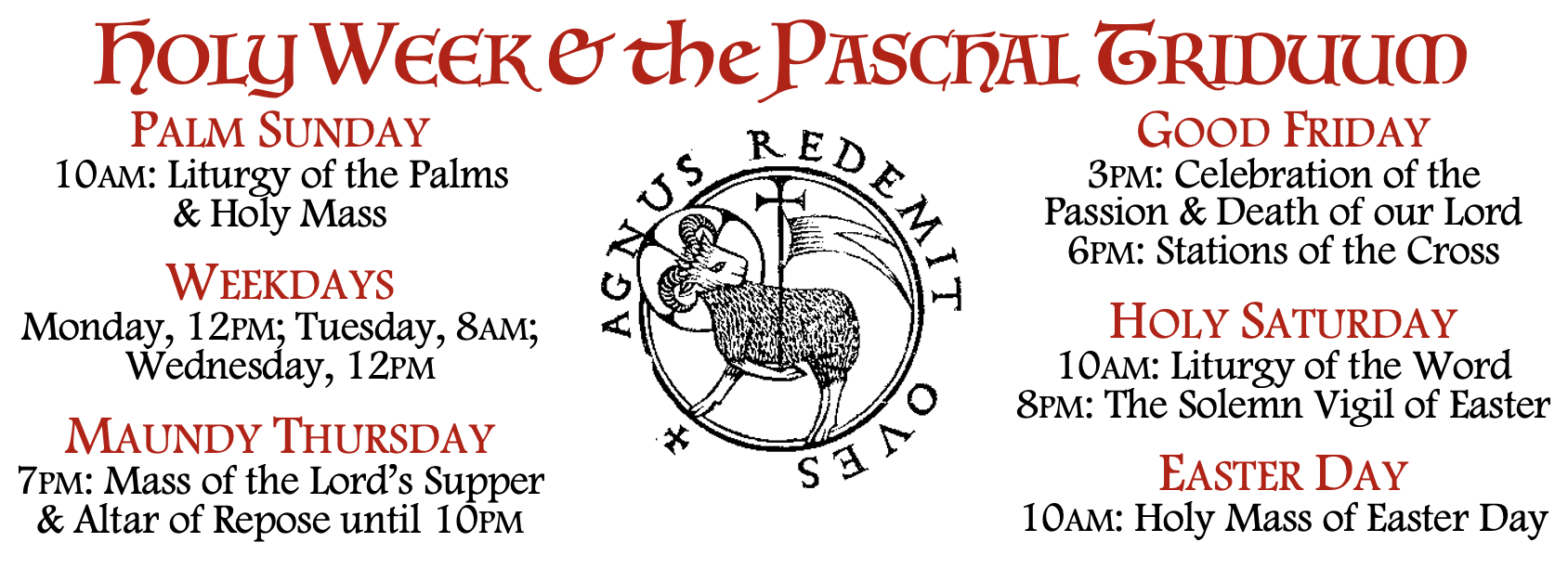 Calendar updated for Confession & Mass. Subscribe to newsletter for more information.